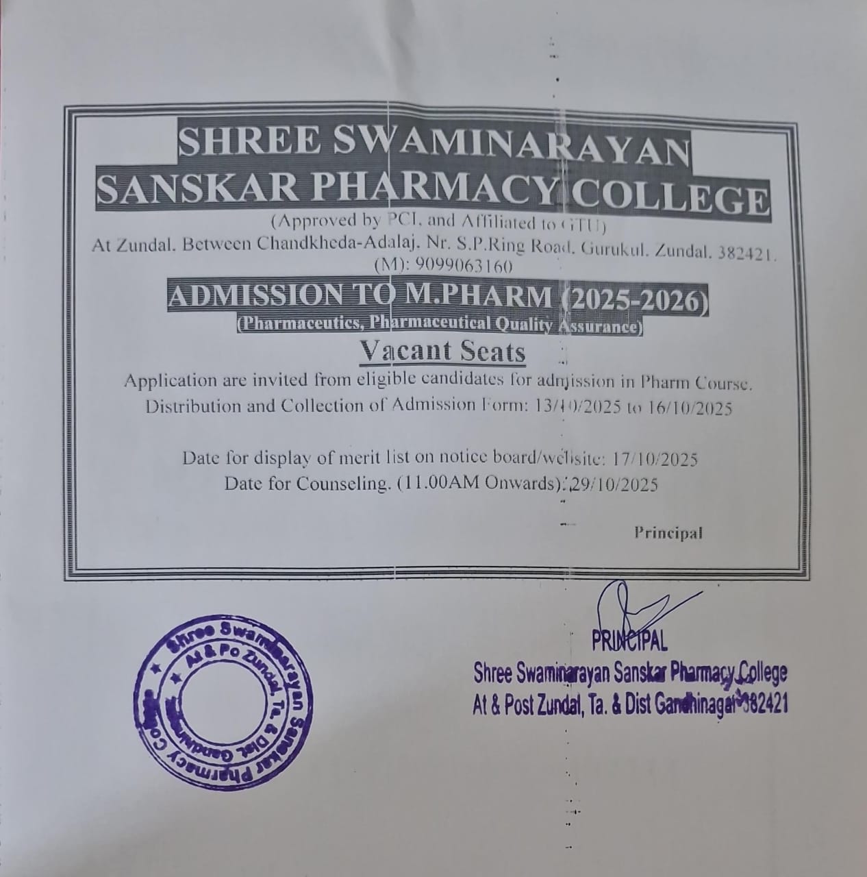 • SHREE SWAMINARAYAN SANSKAR PHARMACY COLLEGE ZUNDAL